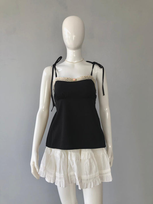 Elegant Black Camisole with Lace Trim and Adjustable Straps