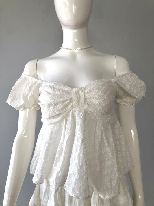 White Off-Shoulder Lace Peplum Crop Top - Romantic Vintage Inspired Blouse
