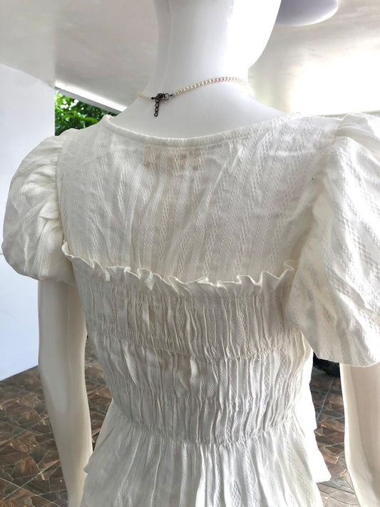 Elegant White Textured Blouse - Romantic Puff Sleeve Top